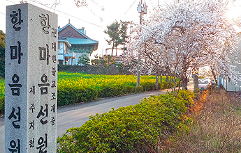 Here on the beautiful island of Jeju, watched over by Hallasan mountain with the blue sea stretching out before it, you’ll find our quiet center. We follow the gentle teaching of Seon Master Daehaeng: to uncover our true selves in the middle of our daily lives, to share our hearts with our neighbors, and to help this island blossom into a home for peace, filled with the Buddha’s wisdom and kindness. Our door is open to all. We hope to be a quiet refuge where you can set down the worries of the day for a little while, and rediscover the simple peace that has always been waiting within your own heart.
