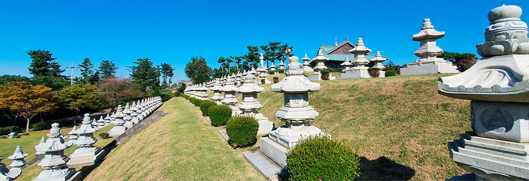 This park was created through the great aspiration of Seon Master Daehaeng, who envisioned a peaceful resting place for ancestors on the center’s grounds. It was built on the principle of Hanmaum—that all things arise from and return to one mind. Here, the spirits of our ancestors can return to that one mind, bringing a deep and lasting peace to both them and their descendants. The park held its opening ceremony on April 23, 1995, and is now home to about 100 memorial stupas.