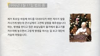 질문:제가 토요일 아침에 어디를 다녀오다가 어떤 저수지 앞을 지나가게 됐는데, 큰스님께서 그 전에 또 설법을 해주셨습니다마는, 방생을 한다고 많은 보살님들이 물가에서 물고기를 저수지에 놓으면서 그렇게 방생을 하시는 걸 보고 대단히 가슴이 아팠습니다. 물론 부처님께서 설법하실 때의 원전들이 나중에 또 다시 편찬되고 실행을 하면서 아마 그런 원뜻이 바뀌어서 그런지 모르지마는, 물론 방생 자체를 큰스님께서 말씀하신 대로? "여러 가지 그 어려운 중생들, 또 지나가다가 개구리 한 마리라도, 올챙이 한 마리라도 물이 없어서 허덕이면 물이 있..